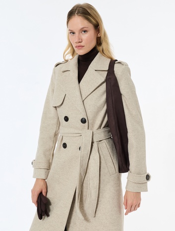 Trenç Kaban Kaşe Uzun Kollu Kruvaze Kemerli Sepete Ekle