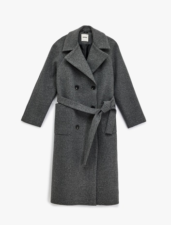 Uzun Kruvaze Kaşe Kaban Düğmeli Cepli