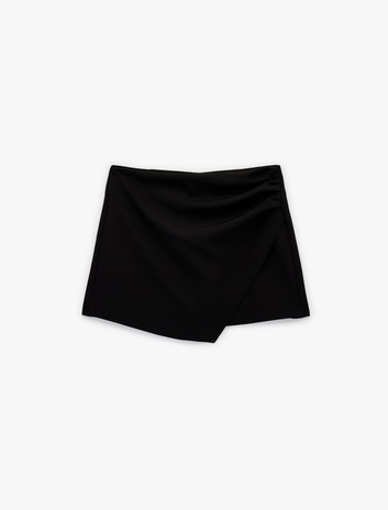 Drape Detaylı Kruvaze Mini Şort Etek Sepete Ekle