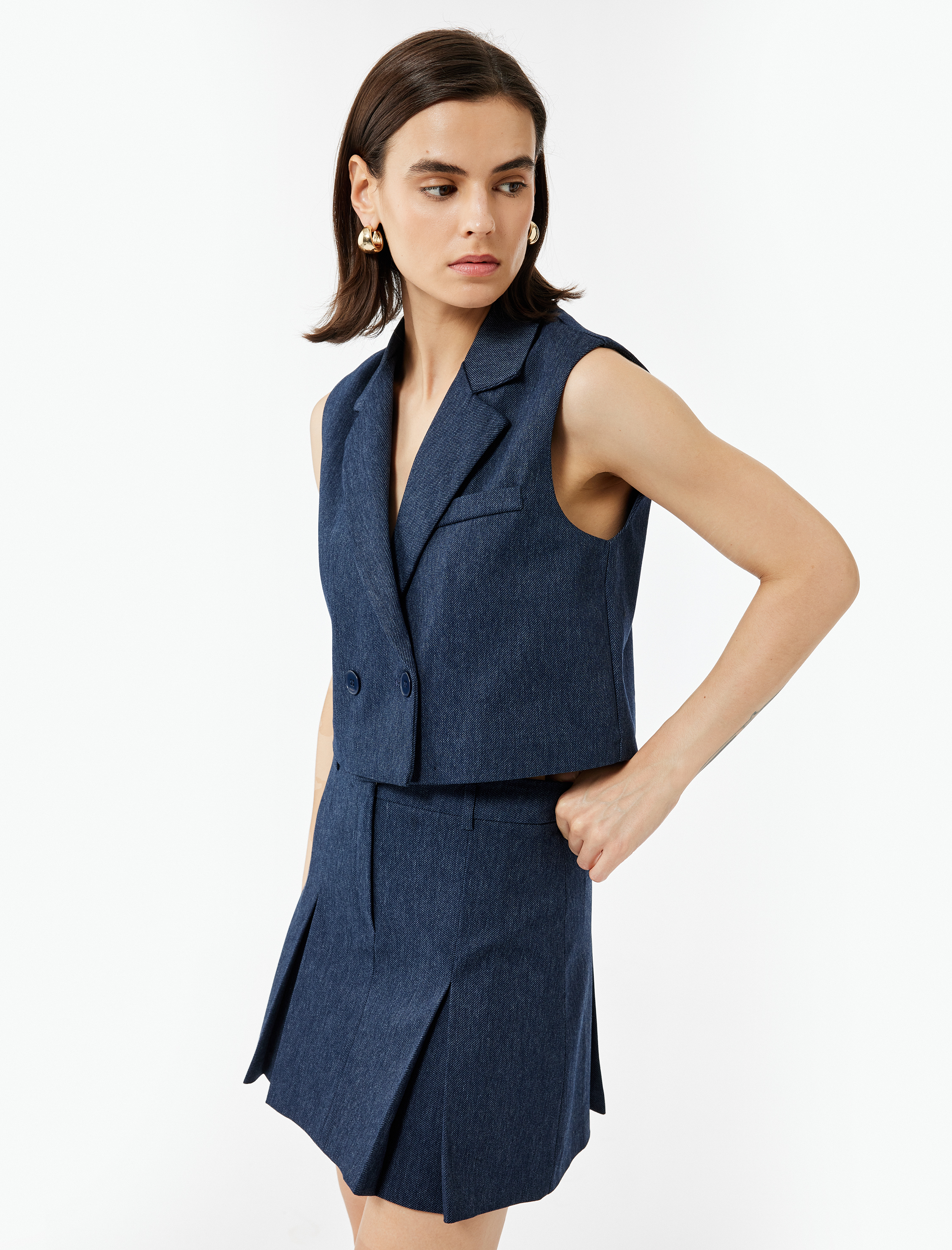 Kruvaze Yaka Kolsuz Crop Blazer Yelek