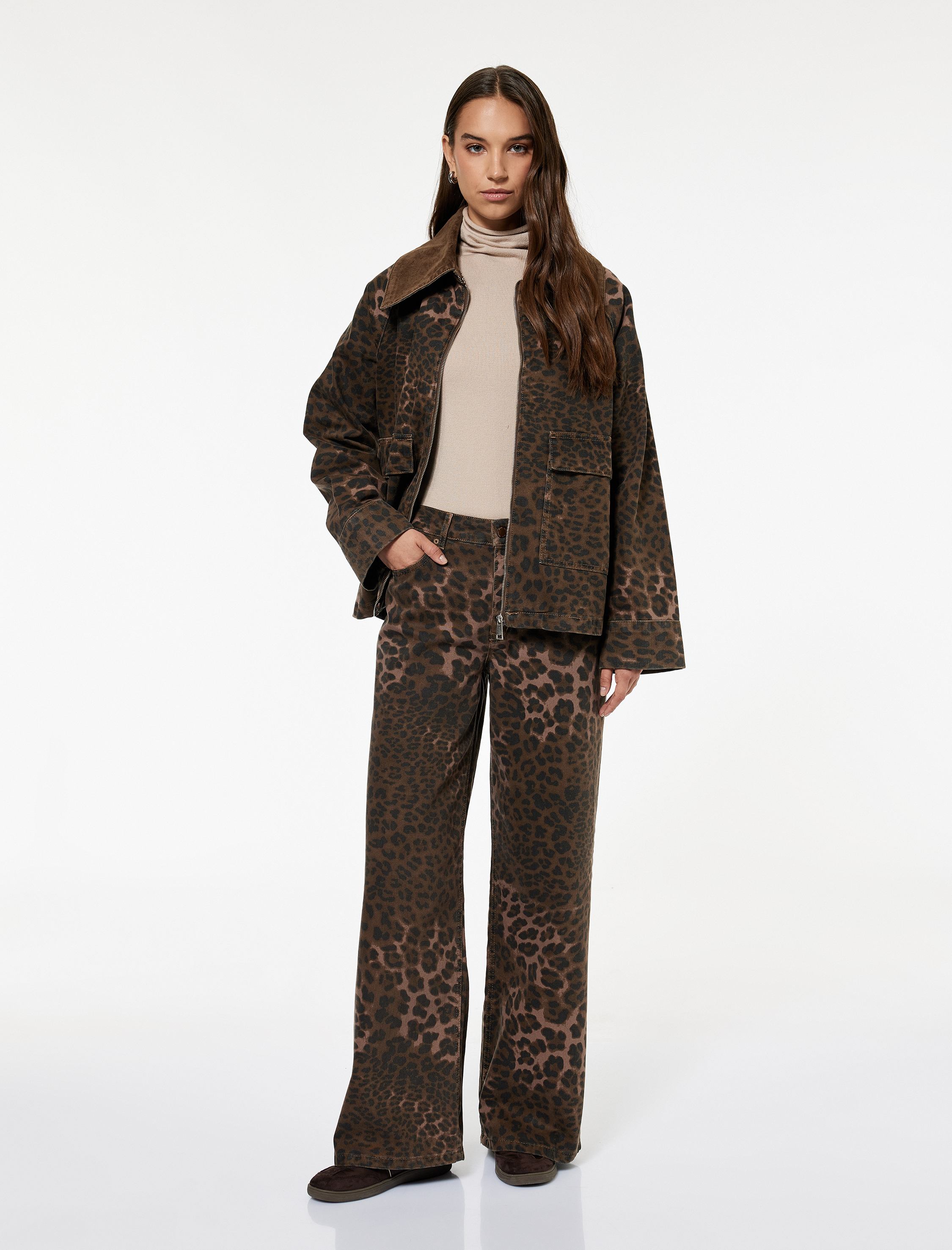 Leopar Desenli Bol Kalıp Jean Pantolon - Loose Straight Fit Jean