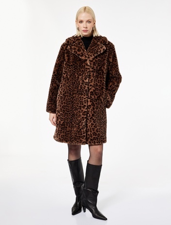 Suni Kürk Kaban Leopar Desenli Uzun Kollu Cepli