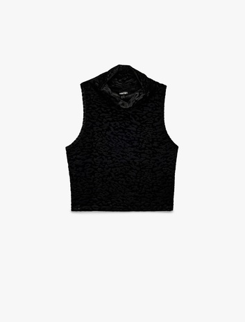 Slim Fit Kolsuz Balıkçı Yaka Leopar Dokulu Crop Kadife Bluz Sepete Ekle