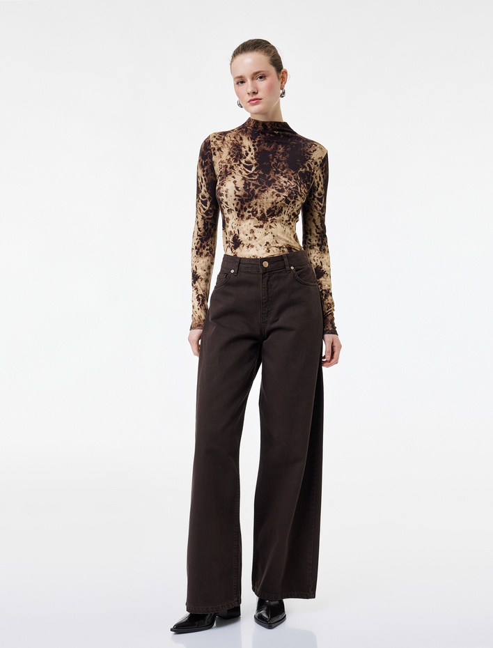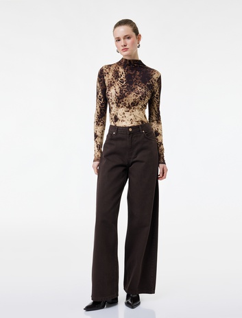 Koton X Şahika Ercümen - Slim Fit Uzun Kollu Dik Yaka Leopar Desenli Tişört Sepete Ekle