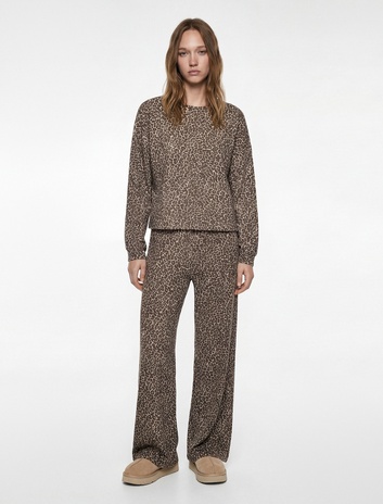 Leopar Desenli Rahat Kesim Viskon Karışımlı Geniş Paça Pijama Altı Sepete Ekle