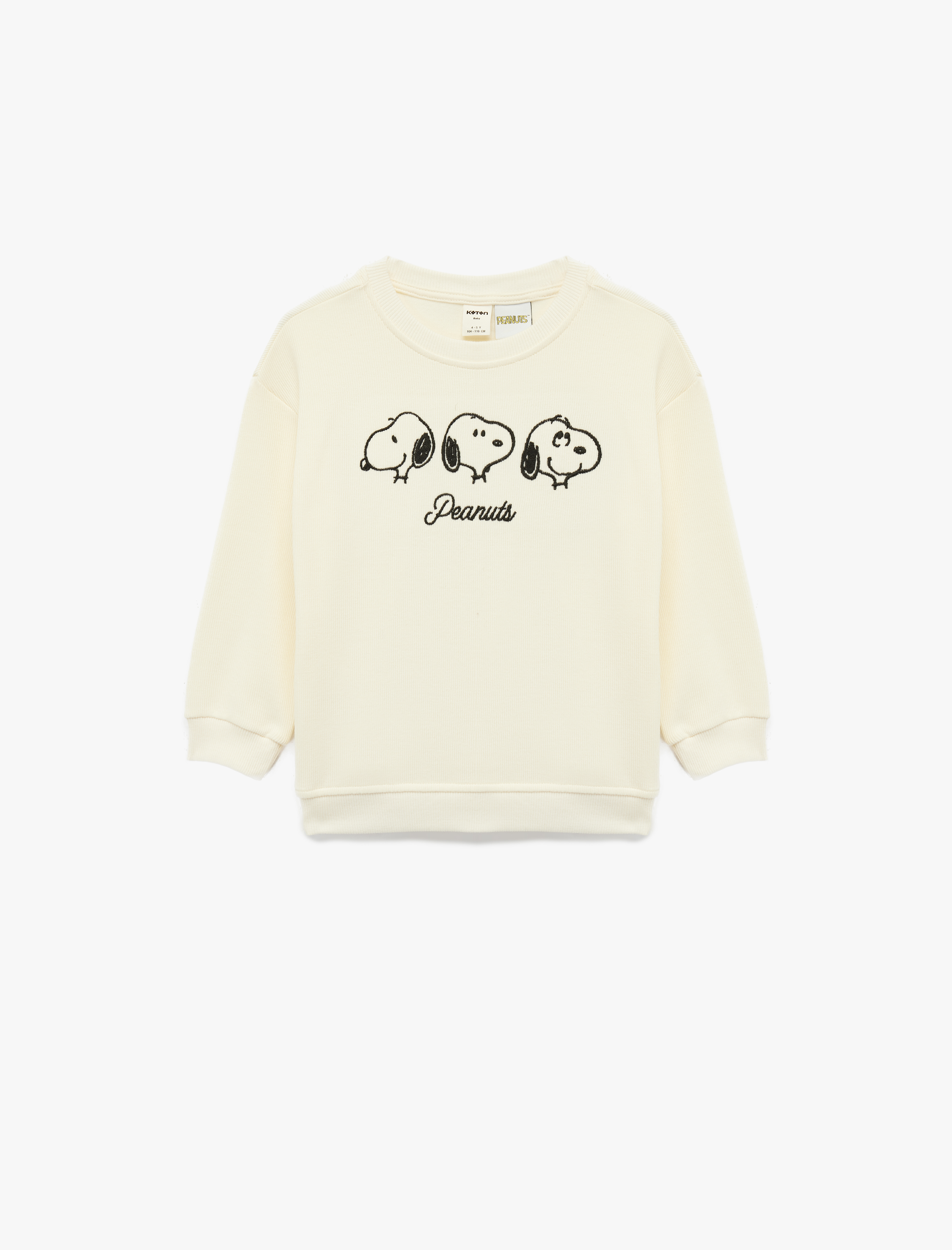 Erkek Bebek Lisanslı Snoopy Baskılı Uzun Kollu Pamuklu Sweatshirt