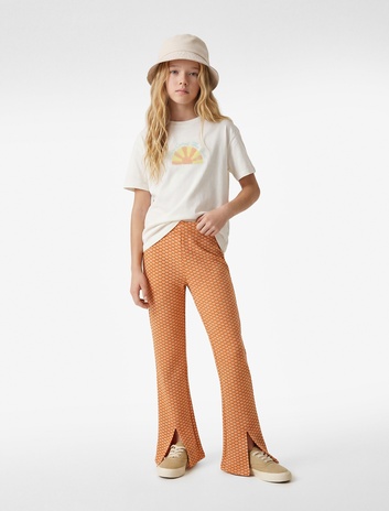 Kız Çocuk Beli Lastikli Ribanalı Pamuklu Tayt