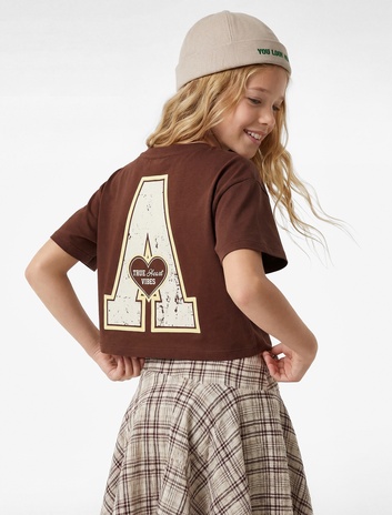 Kız Çocuk Slogan Baskılı Bisiklet Yaka Kısa Kollu Pamuklu Crop Tişört