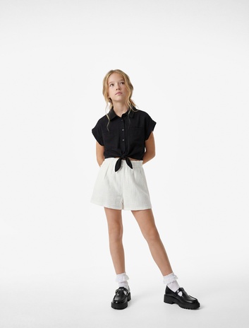 Pamuklu Yüksek Bel Beli Lastikli Şort Sepete Ekle