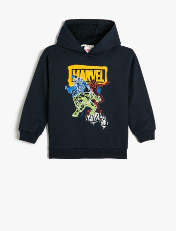 Erkek Çocuk Marvel Kapşonlu Sweatshirt Lisanslı Uzun Kollu Şardonlu