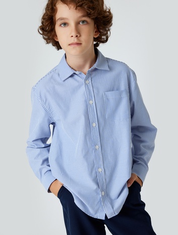 Erkek Çocuk Gömlek Uzun Kollu Düğmeli Tek Cepli Pamuk Karışımlı
