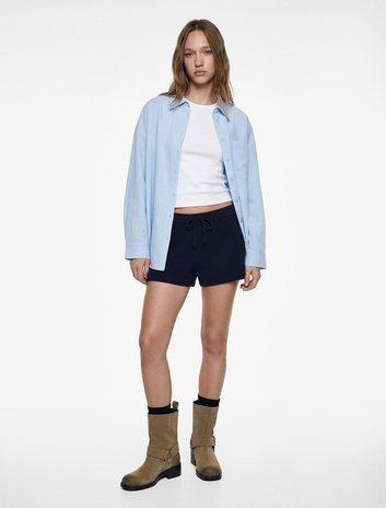 Modal Kumaş Uzun Kollu Bağlama Detaylı Oversize Tunik Gömlek