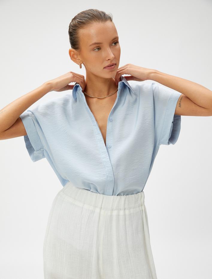 Kısa Kollu Gömlek Gizli Düğmeli Sepete Ekle