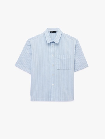 Regular Fit Kısa Kollu Devrik Yaka Çizgili Gömlek Sepete Ekle