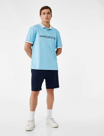 Rahat Kalıp Kısa Kollu Biyeli Polo Yaka Baskılı Spor Tişört
