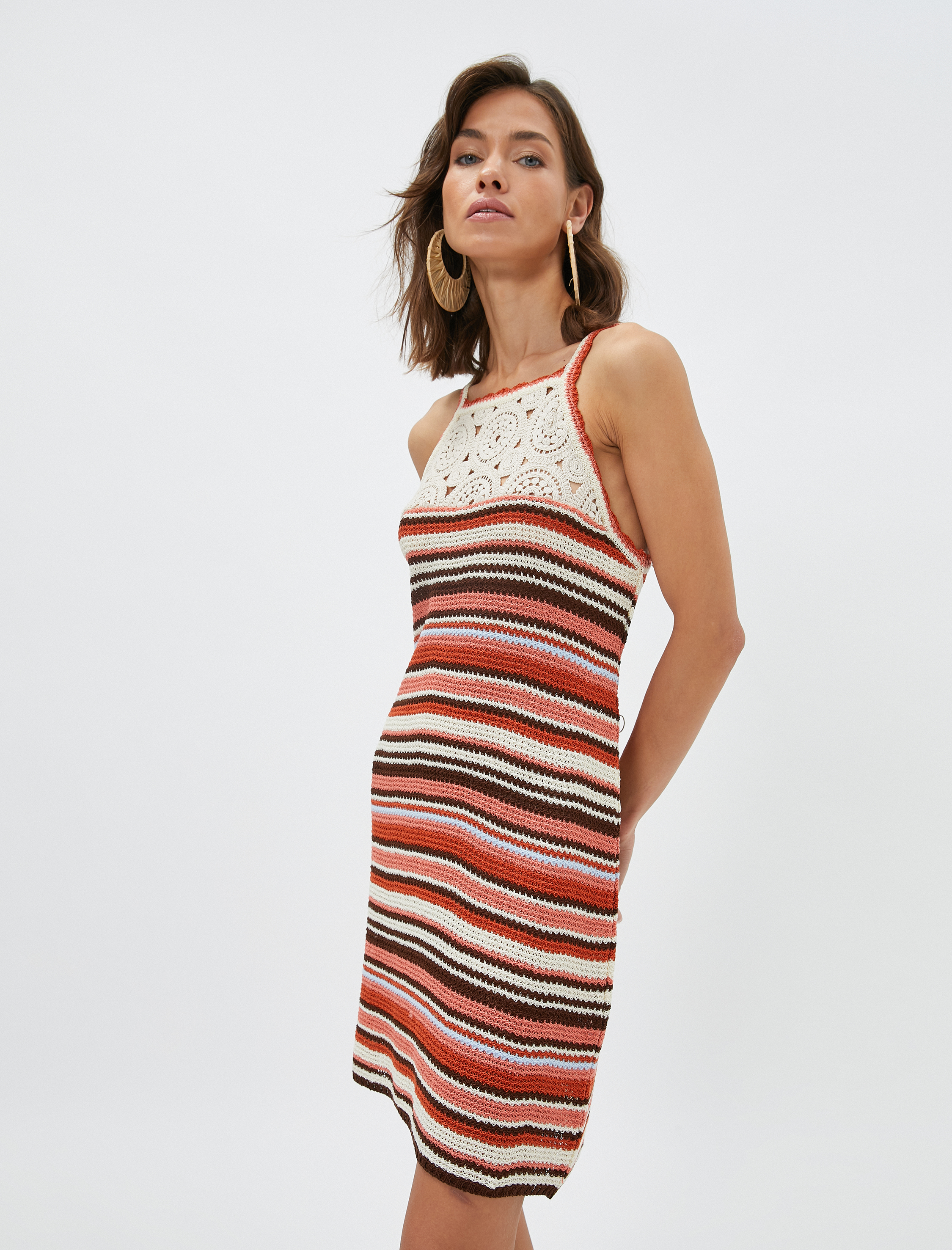 Melis Ağazat X Koton | Askılı, dar kesim, astarsız, mini kroşe elbise.