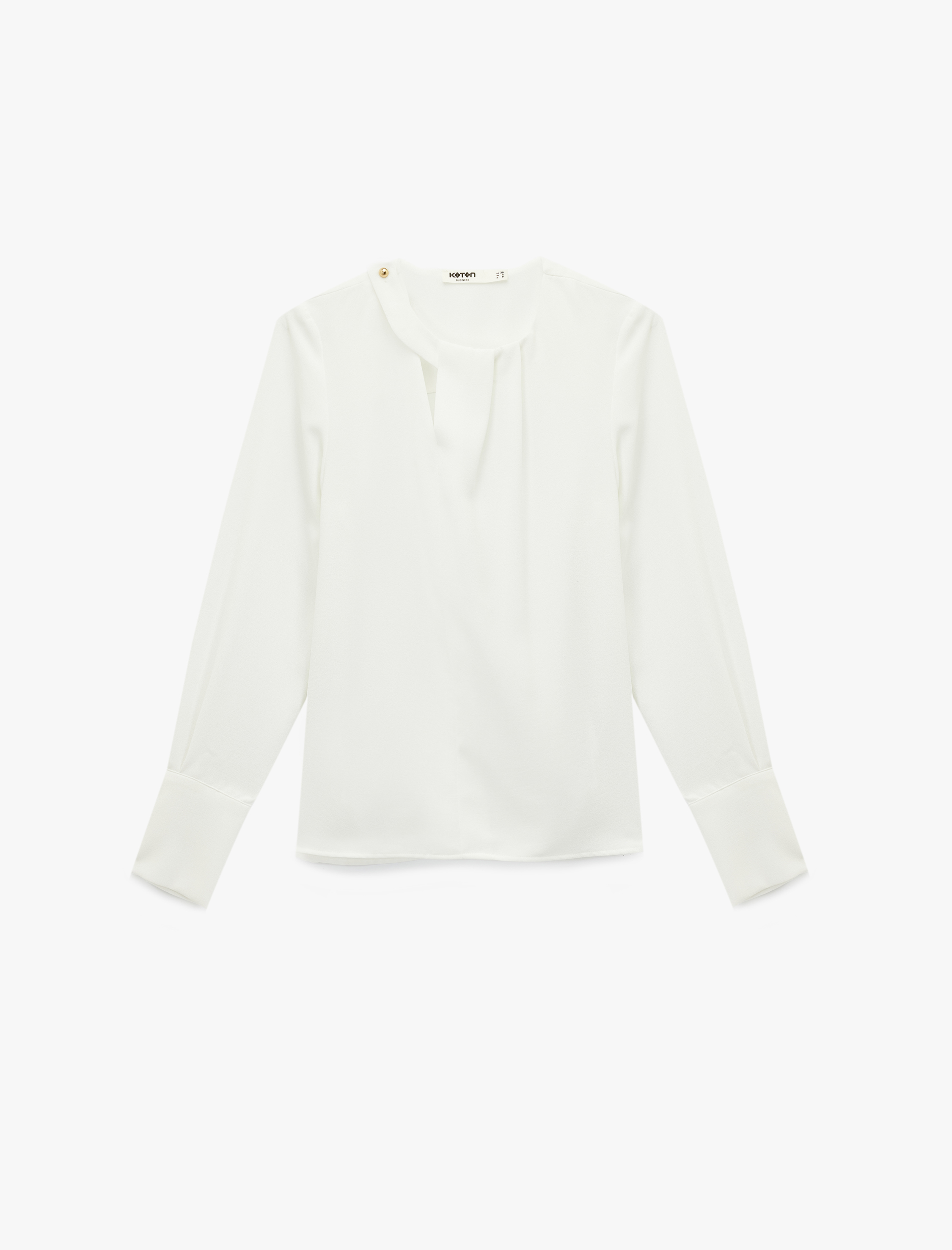 Metal Aksesuarlı Pencere Detaylı Asimetrik Yaka Uzun Kollu Krep Bluz   Metal Aksesuarlı Pencere Detaylı Asimetrik Yaka Uzun Kollu Krep Bluz   Metal Aksesuarlı Pencere Detaylı Asimetrik Yaka Uzun Kollu Krep Bluz