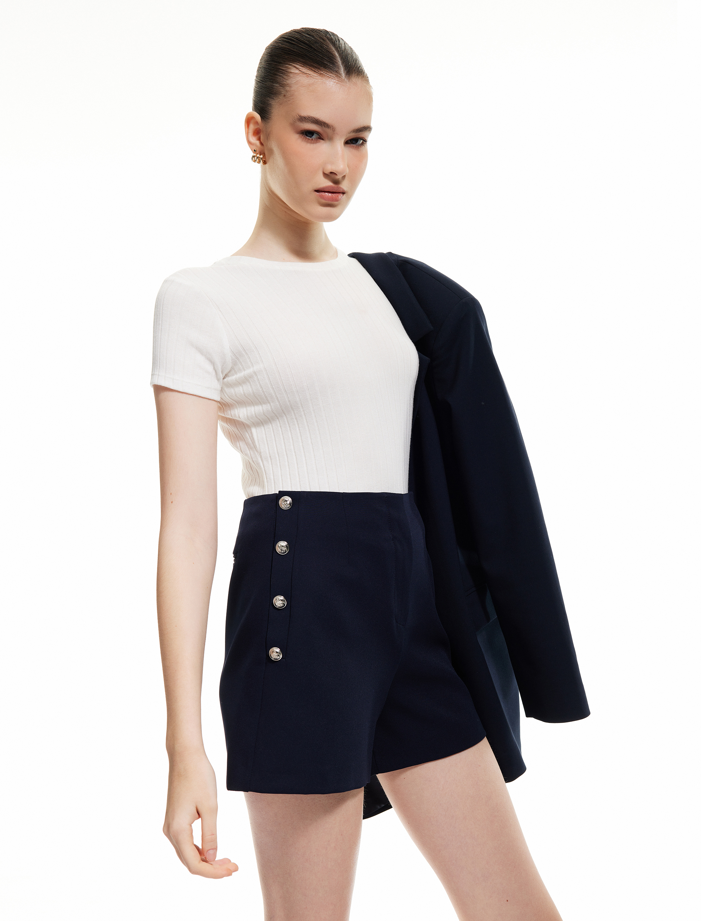Metal Aksesuarlı Yüksek Bel Mini Şort