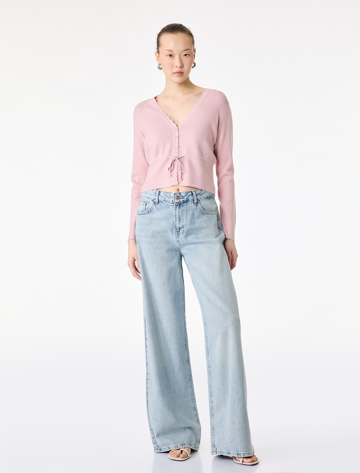 Uzun Kollu Bisiklet Yaka Bağcıklı Fiyonklu Crop Hırka Sepete Ekle