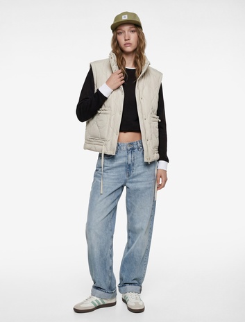 Dik Yaka Kapitoneli Çıtçıt Düğmeli Oversize Kolsuz Yelek Sepete Ekle