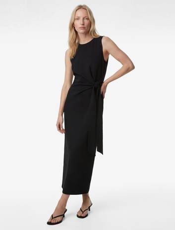 Bisiklet Yaka Kolsuz Slim Fit Yırtmaçlı Düğüm Detaylı Midi Elbise Sepete Ekle