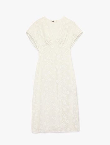 Bürümcük Kumaş Kısa Kollu V Yaka Midi Elbise Sepete Ekle