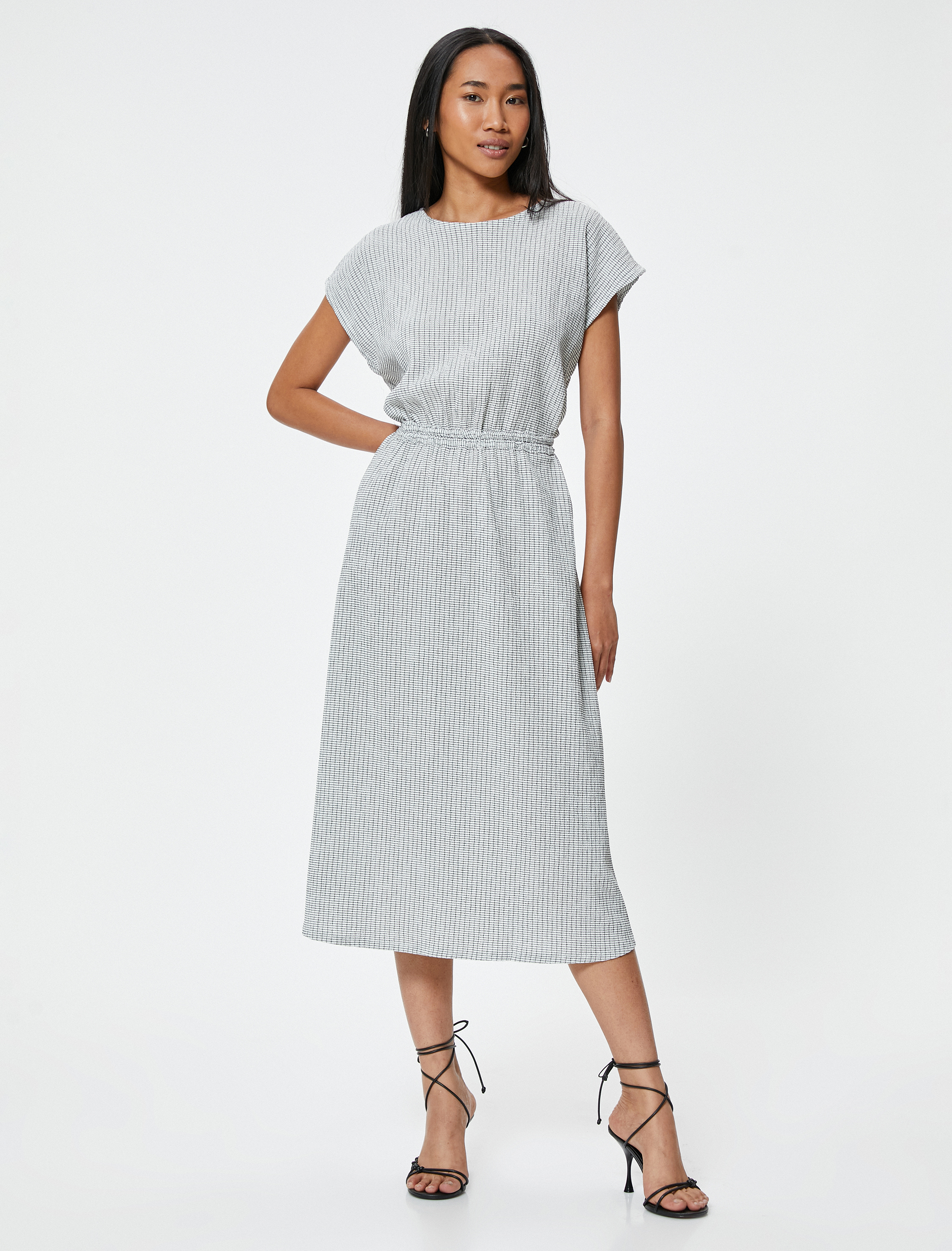 Midi Elbise Kısa Kollu Bisiklet Yaka