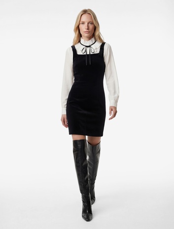 Uzun Kollu Kare Yaka Mini Kadife Elbise