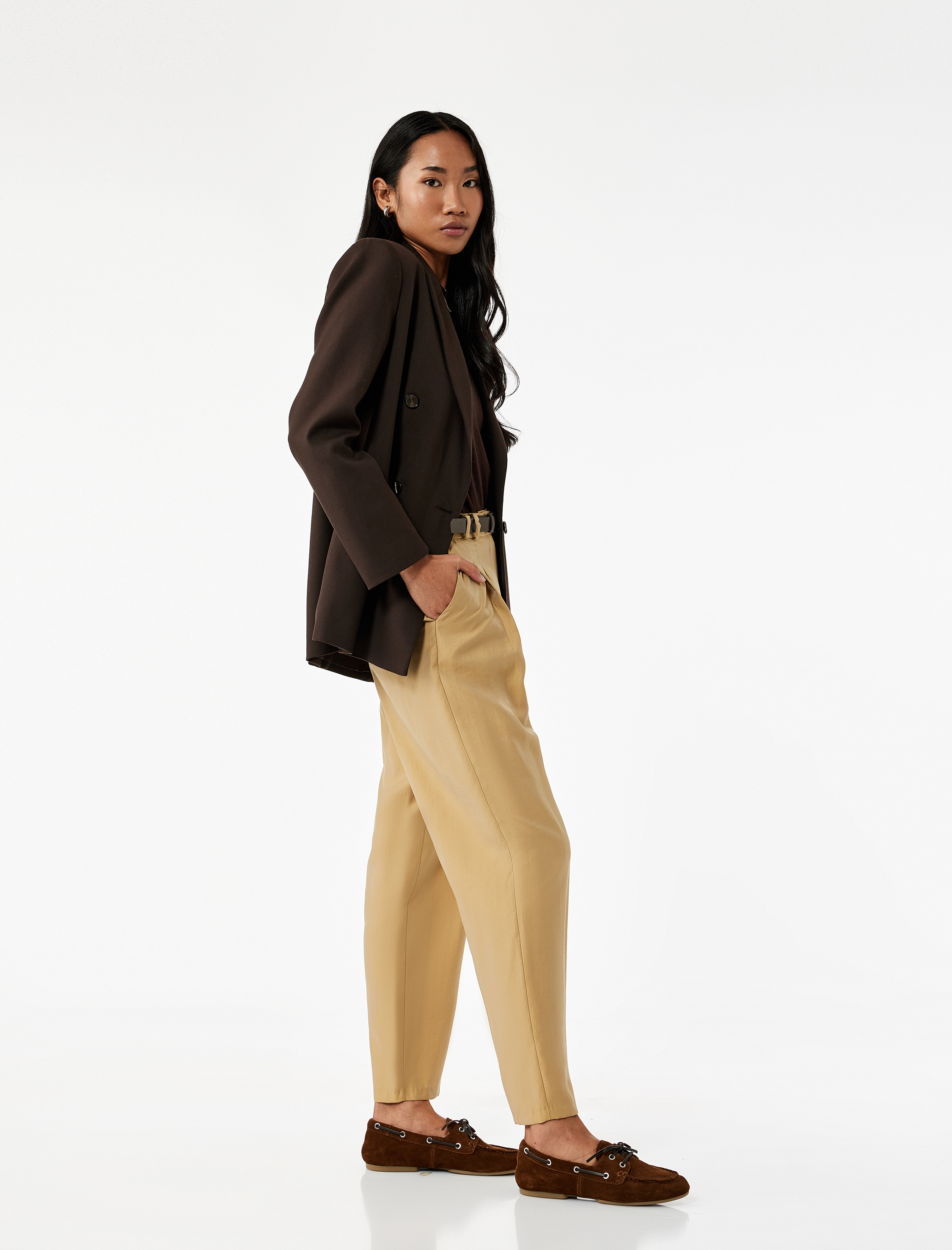 Modal Kumaş Pileli Cepli Kemerli Havuç Kesim Pantolon