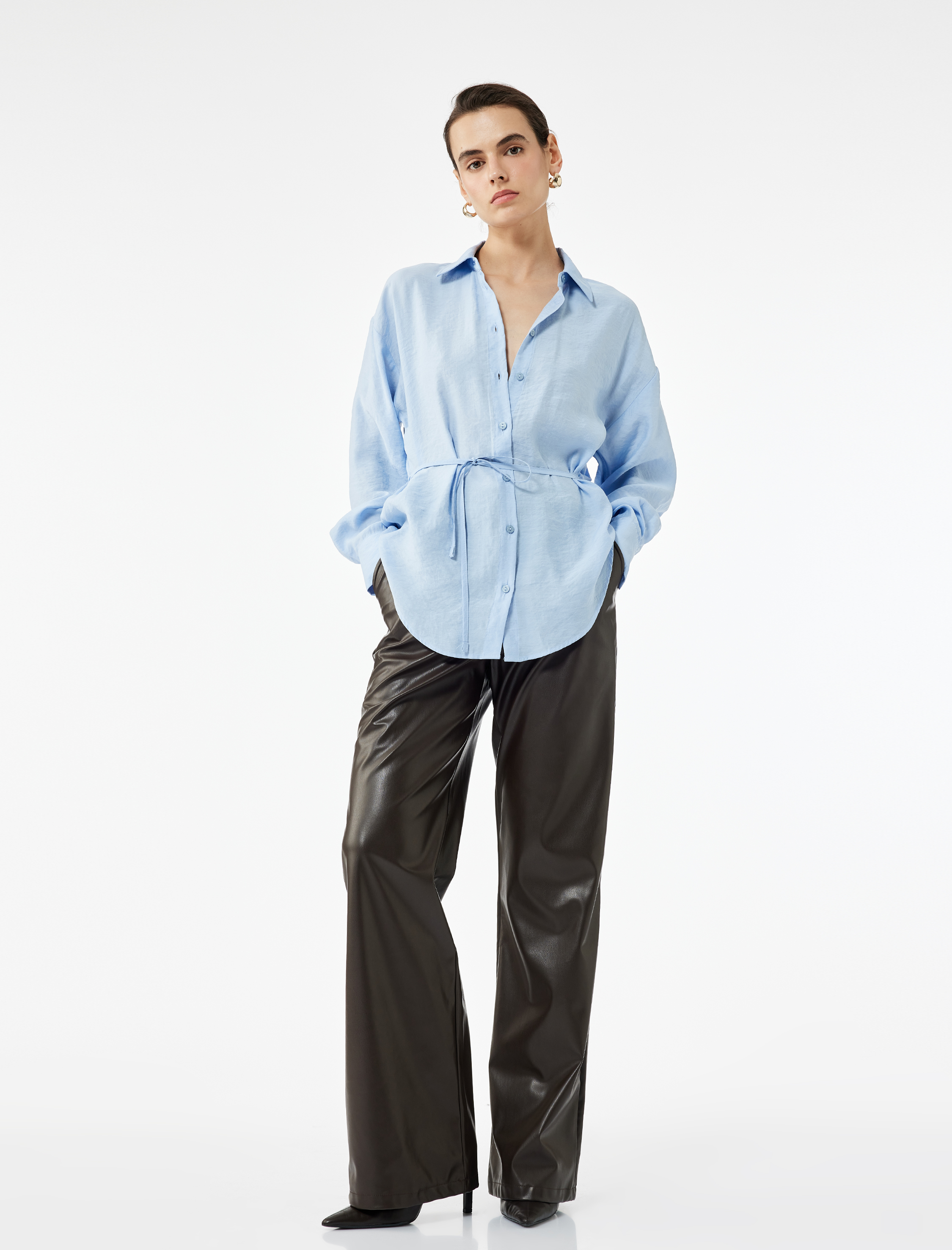Modal Kumaş Uzun Kollu Beli Bağlama Detaylı Oversize Gömlek