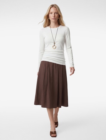 Modal Kumaş Yırtmaçlı Büzgü Detaylı A Kesim Midi Etek Sepete Ekle