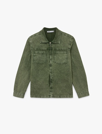 Pamuklu Cep Detaylı Klasik Yaka Yıkamalı Fermuarlı Jean Gömlek Ceket Sepete Ekle