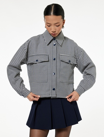 Uzun Kollu Cepli Kazayağı Desenli Oversize Gömlek Ceket Sepete Ekle