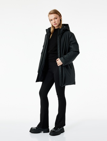 Uzun Kapitone Şişme Mont Kapüşonlu Cepli Fermuarlı