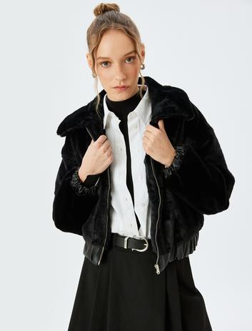 Dik Yaka Fermuarlı Cep Detaylı Suni Kürk Ceket Sepete Ekle