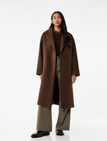 Uzun Kaşe Kaban Kruvaze Yaka Cep Detaylı Pamuk Karışımlı Sepete Ekle