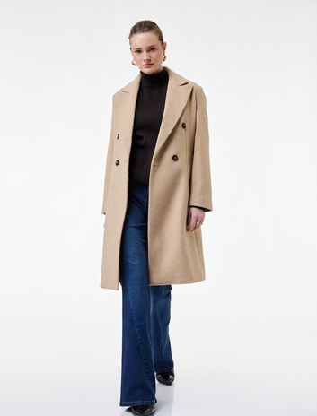 Cepli Uzun Kollu Kruvaze Düğmeli Kaşe Kaban
