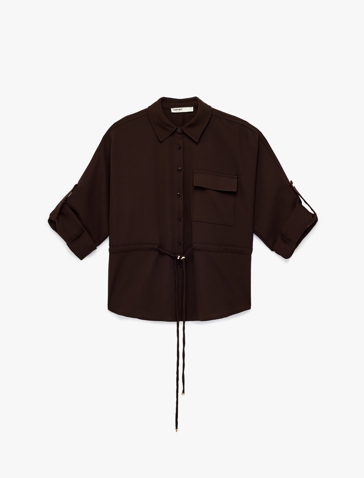 Uzun Kollu Klasik Yaka Beli Bağcıklı Cepli Gömlek Sepete Ekle