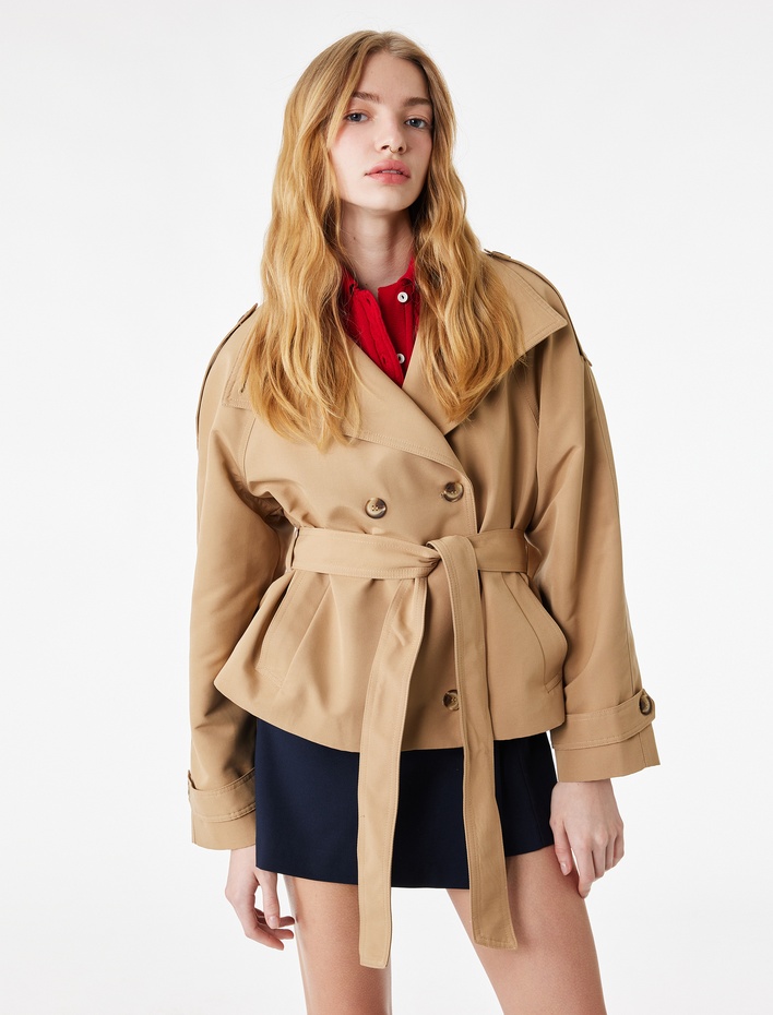 Trenç Kaban Kaşe Kruvaze Kemerli Cepli Uzun Kollu Sepete Ekle