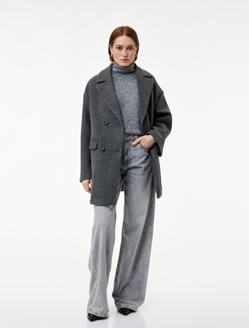 Uzun Kollu Cepli Dik Yaka Düğmeli Kruvaze Kısa Kaşe Mont Sepete Ekle