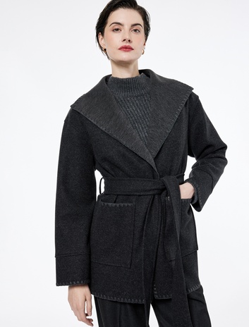 Çoban Dikiş Detaylı Kemerli Cepli Uzun Kollu Kaşe Mont Sepete Ekle