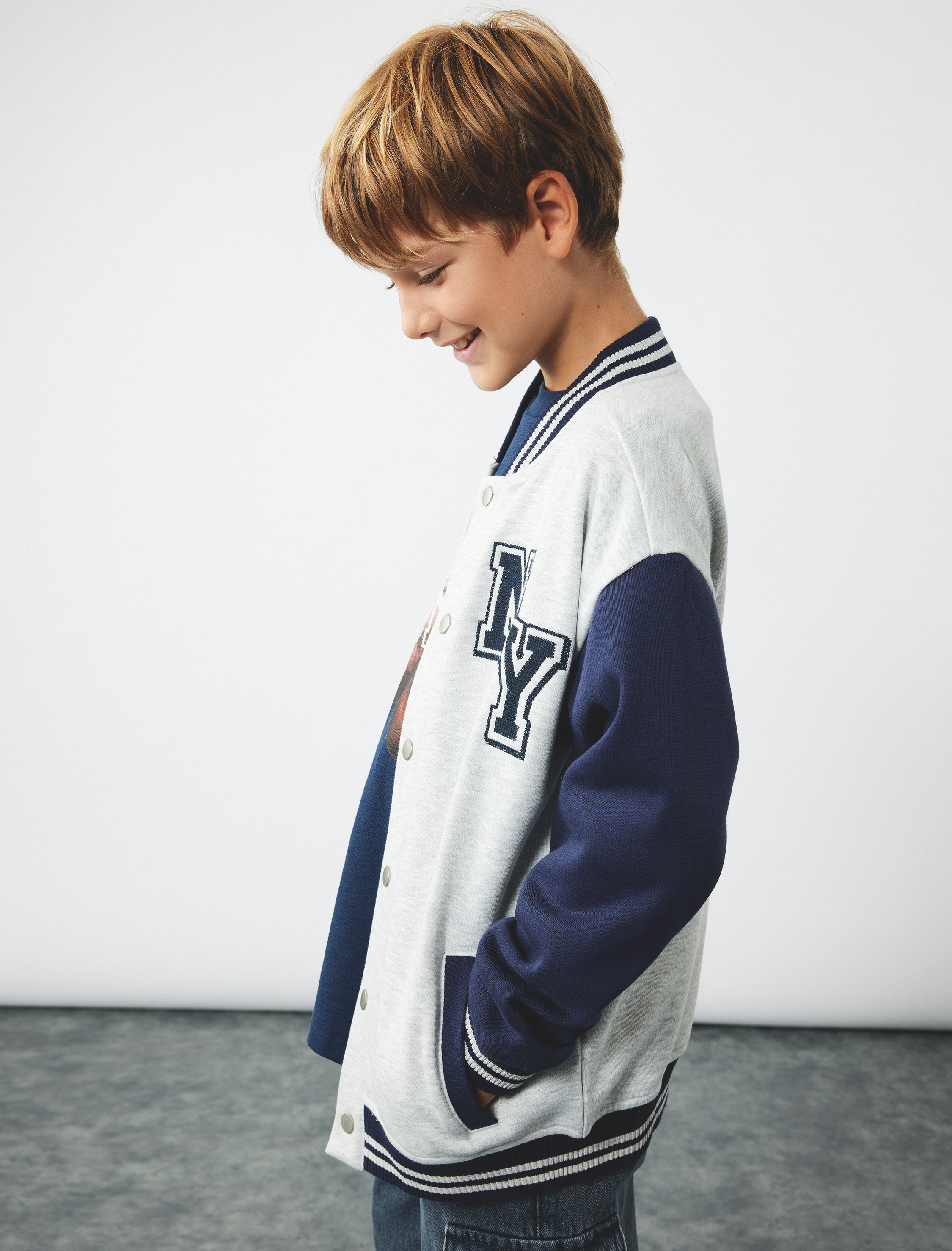 Erkek Çocuk Nakışlı Çıtçıt Kapamalı Uzun Kollu Bomber Kolej Ceket