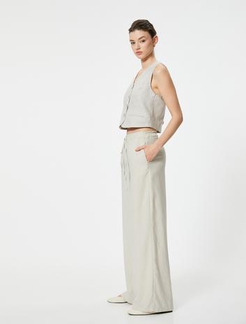 Keten Karışımlı Pantolon Düz Paça Kemer Detaylı