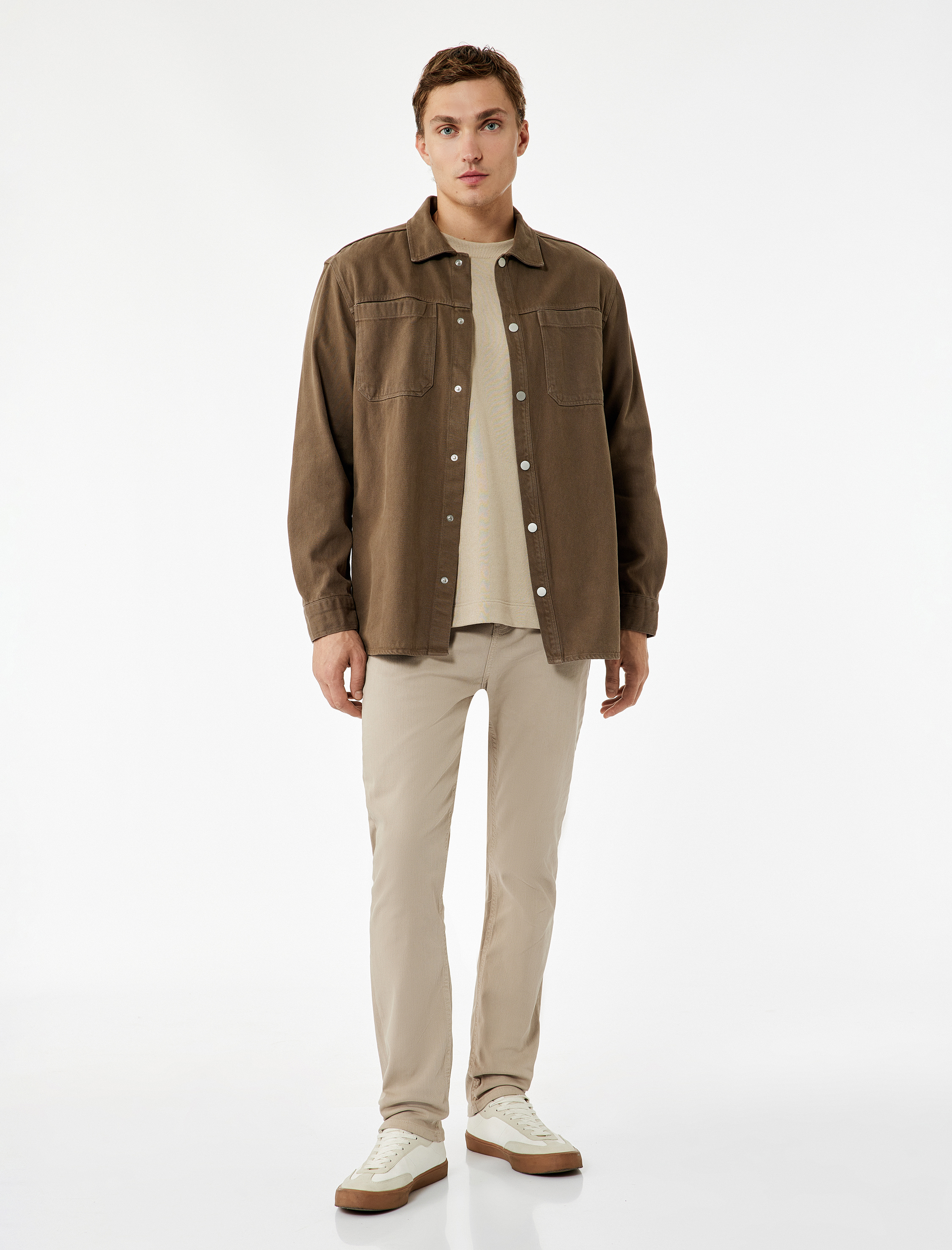 Normal Bel Düğmeli Pamuklu Cep Detaylı Gabardin Pantolon