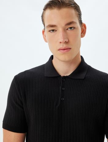 Triko Tişört Polo Yaka Basic Kısa Kollu Dokulu Pamuklu