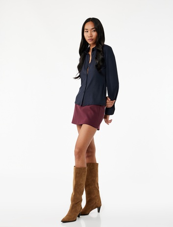 Dokulu Parlak Düğüm Detaylı Kruvaze Mini Şort Etek