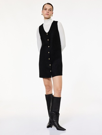 V Yaka Kolsuz Düğmeli Mini Elbise