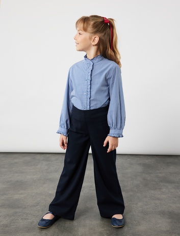 Kız Çocuk Cepli Viskon Karışımlı Bol Kesim Okul Pantolonu