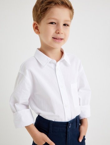 Erkek Çocuk Uzun Kollu Tek Cepli Pamuklu Basic Gömlek