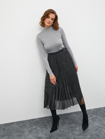 Melis Ağazat X Koton - Simli Yarım Balıkçı Yaka Triko Kazak Sepete Ekle